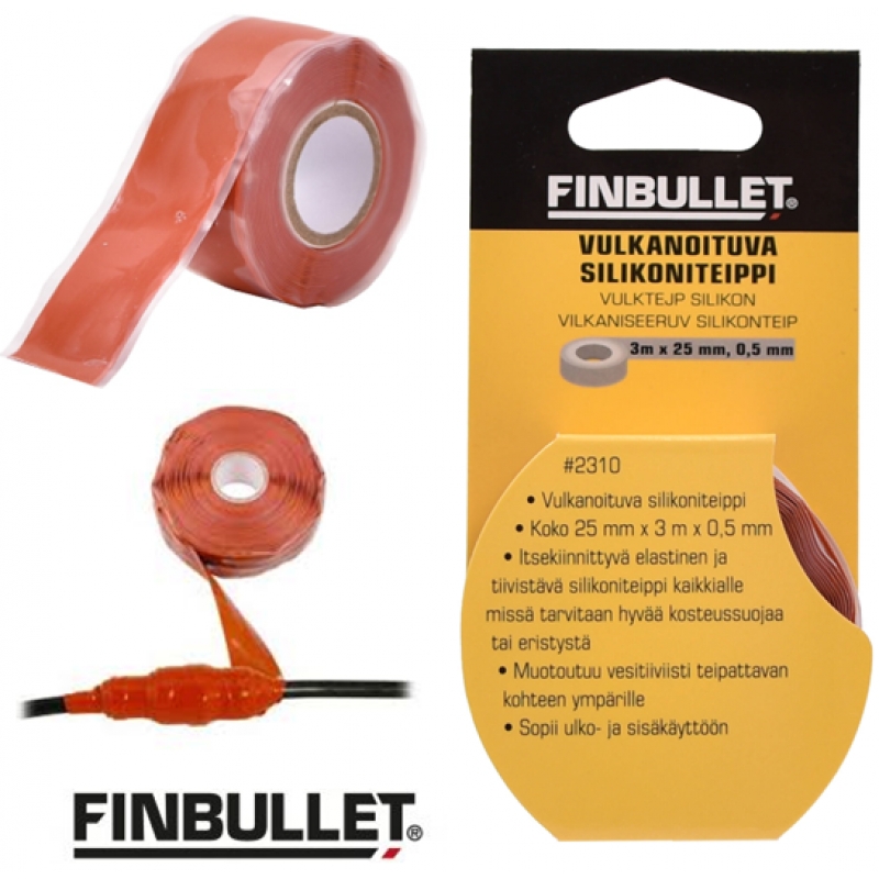 - līmējiet pašvulkanizējošo lenti uz silikona bāzes (lenta pielīp tikai pie sevis)