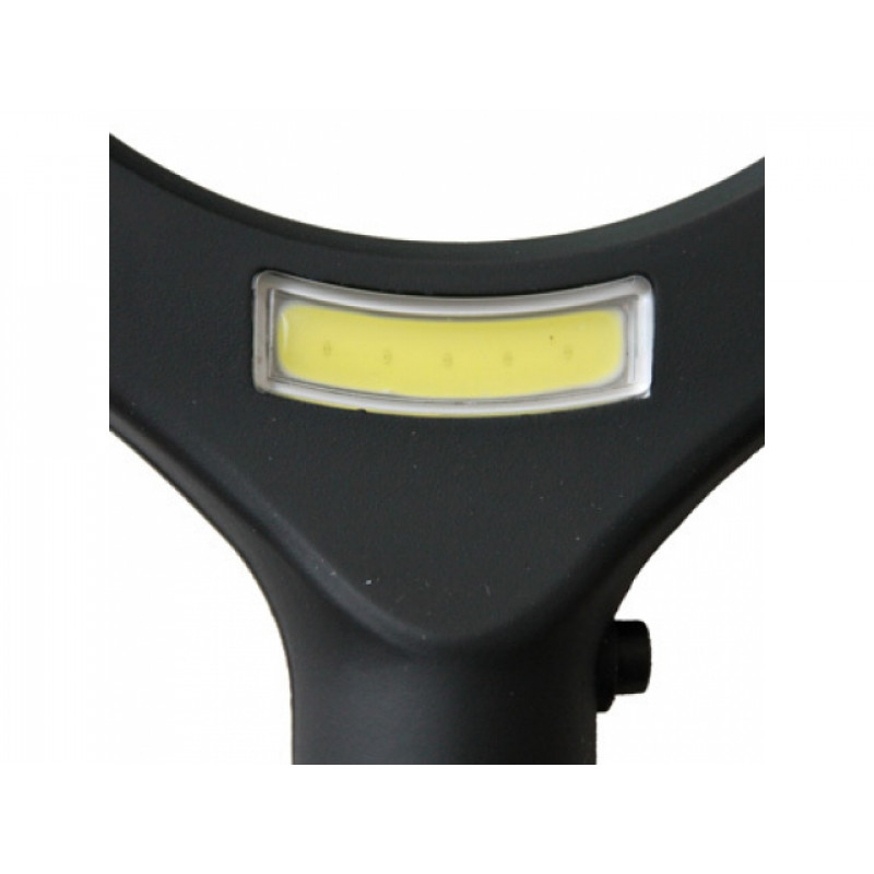 Lupai ir 3 x COB apgaismojums, ko darbina 2 R6 baterijas.